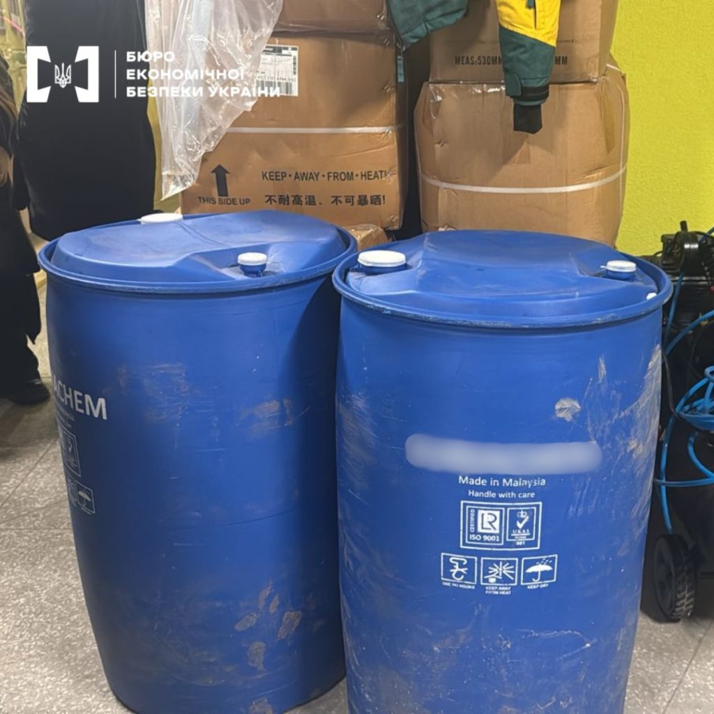 • сировину — 800 літрів гліцерину та понад 550 літрів ароматизаторів;