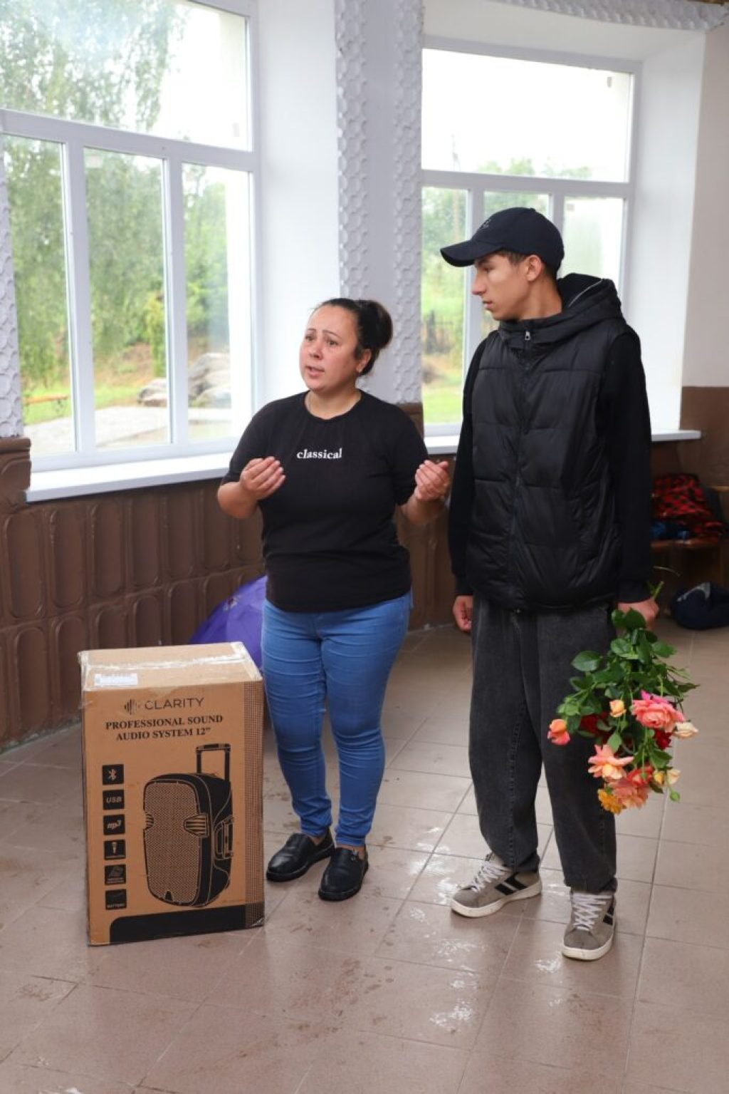 Як і обіцяла під час нашої попередньої зустрічі, передала музичну апаратуру для проведення заходів. Загалом ми вже передали понад 200 подібних систем у школи, садочки, будинки культури – і запити продовжують надходити», — зазначила вона.
