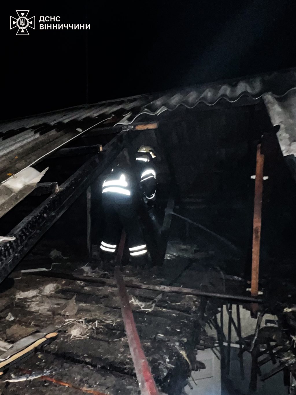 Як повідомляють рятувальники, інцидент стався у селі Рожнятівка Томашпільської громади. Вогонь охопив дах господарської будівлі площею близько 100 кв. м.