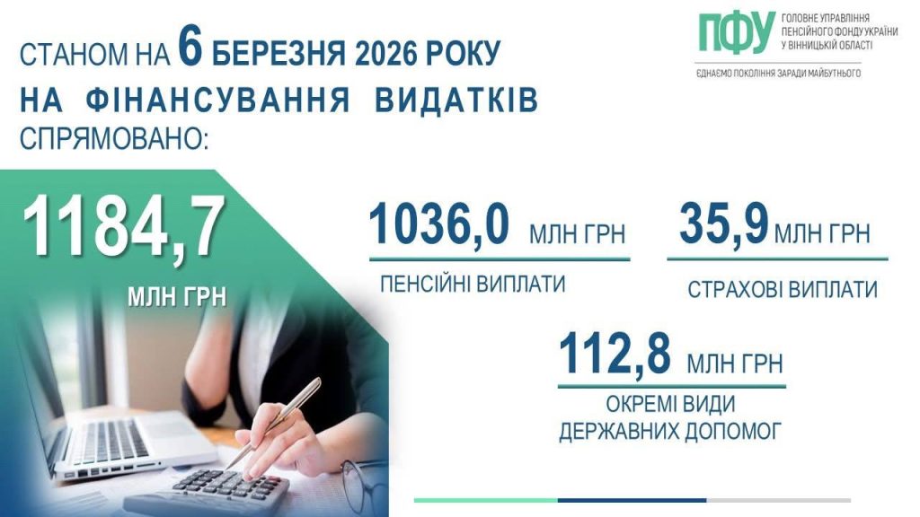 Жителям Вінницької області вчасно профінансували пенсії, страхові виплати та державні соціальні допомоги. Станом на 6 березня 2026 року на ці потреби спрямували понад 1,18 млрд грн.