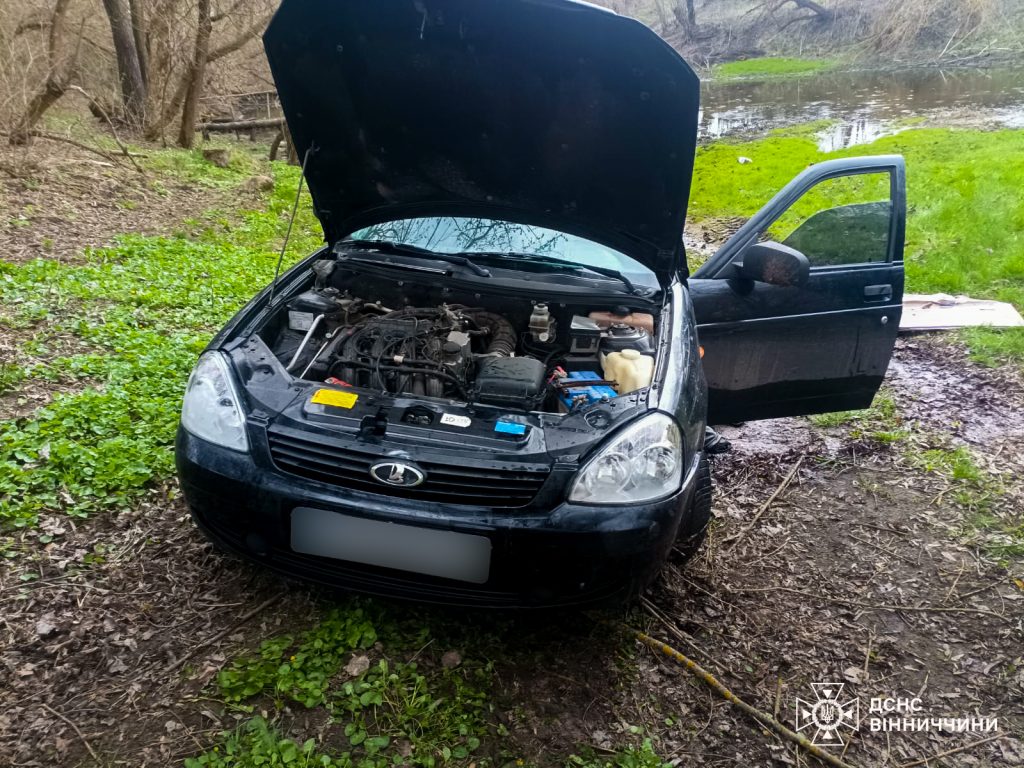 Рятувальники оперативно прибули на місце події та за допомогою буксирувальних тросів витягли автомобіль на берег.
