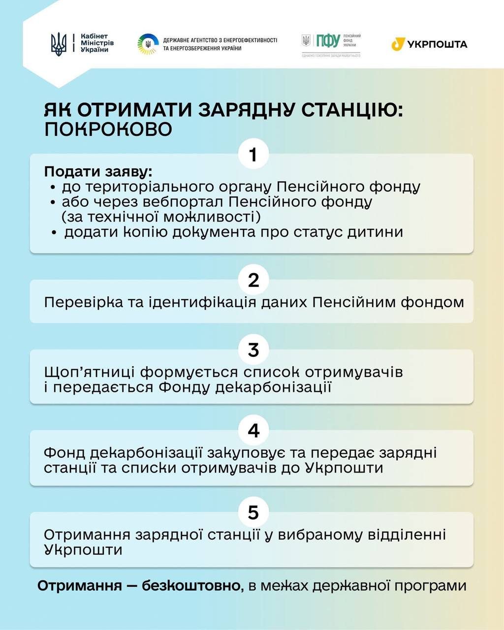 У межах державної програми в Україні родини, які виховують дітей з інвалідністю підгрупи А, можуть безкоштовно отримати портативну зарядну станцію. Для таких дітей стабільне електроживлення є життєво необхідним, адже забезпечує роботу медичних та реабілітаційних пристроїв.