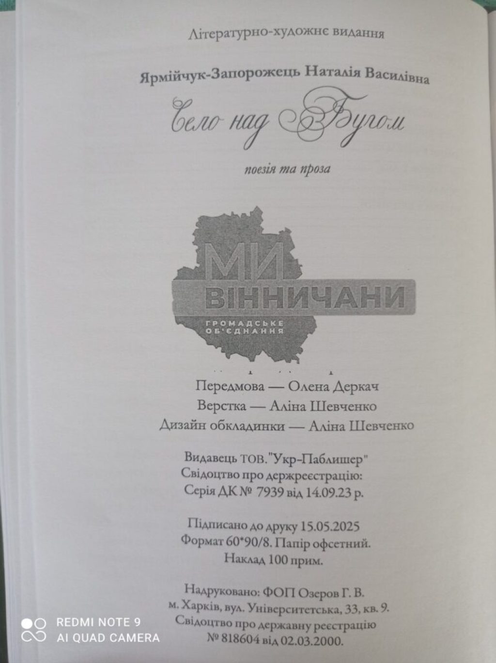 У світ вийшла нова поетична збірка вінницької авторки Наталії Ярмійчук-Запорожець під назвою «Село над Бугом».