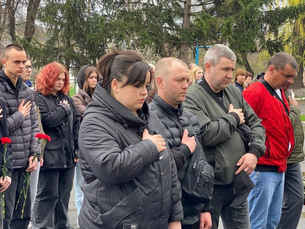 На мітинг-реквієм до ліцею прийшли рідні захисника, друзі, викладачі та школярі, просто небайдужі городяни, які хотіли віддати данину шани чоловіку, чиє життя забрала війна.