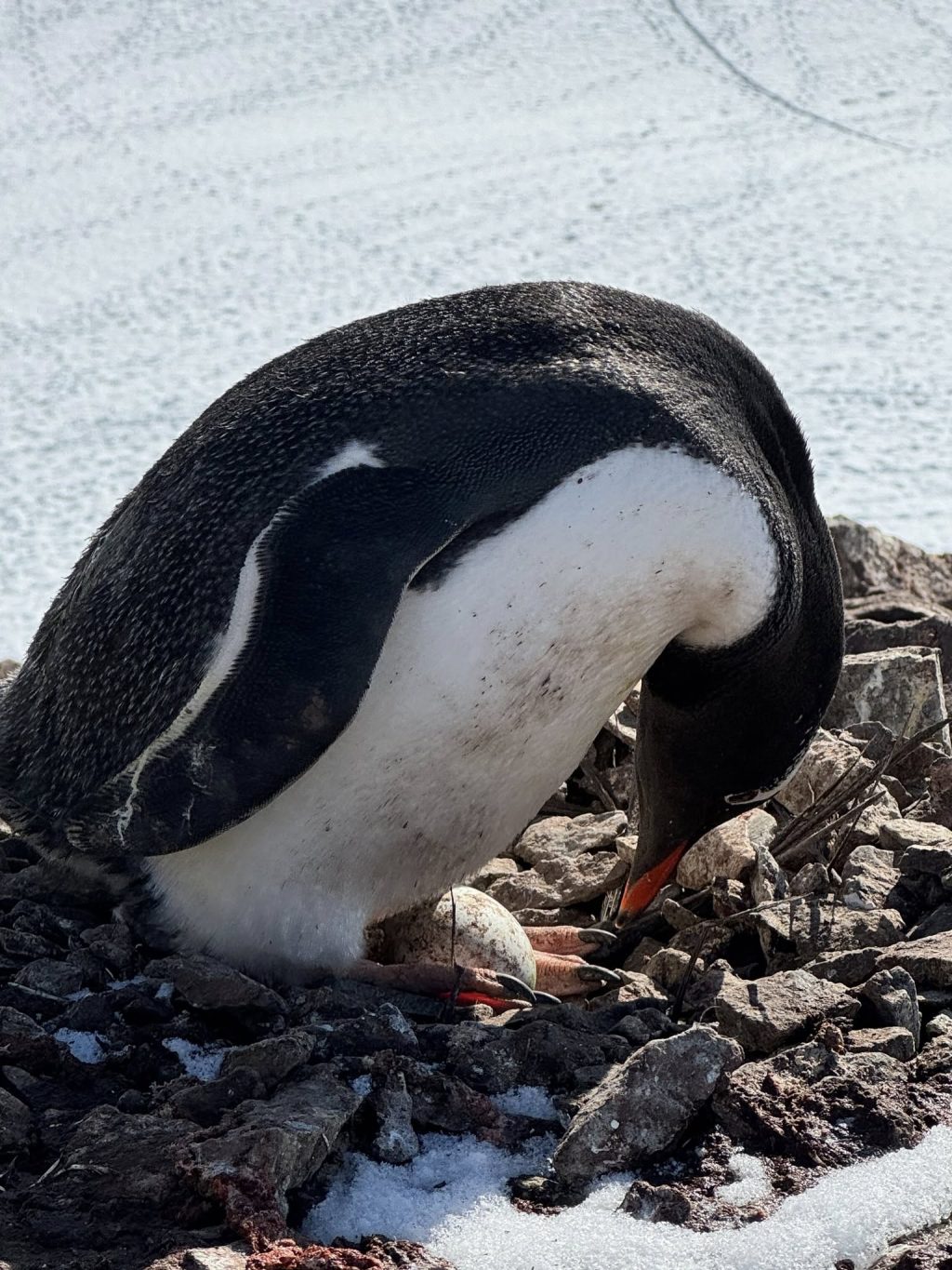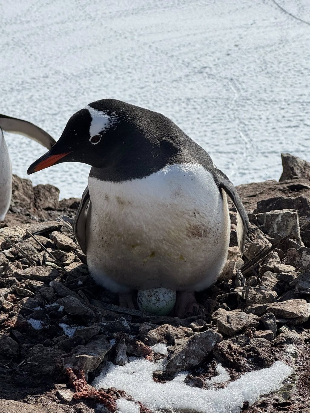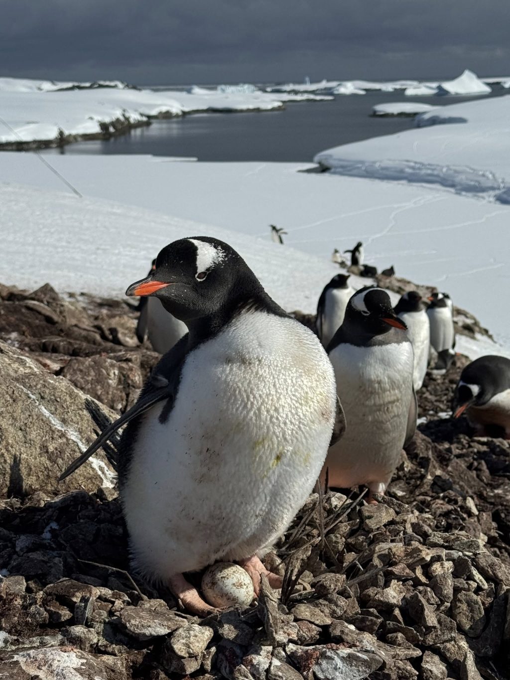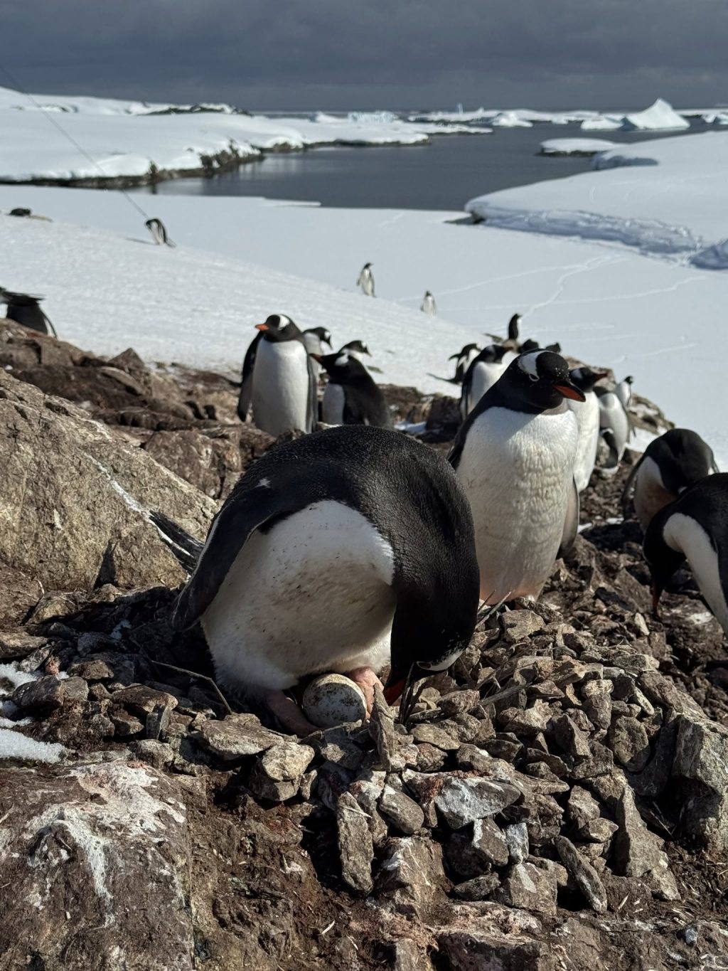 «Я звернула увагу, що деякі пінгвіни лежать і не встають — вони власне і стали “підозрюваними”. Вирішила підійти ближче — виявилось недаремно. У одного пінгвіна справді вже є яйце», — розповіла вчена.