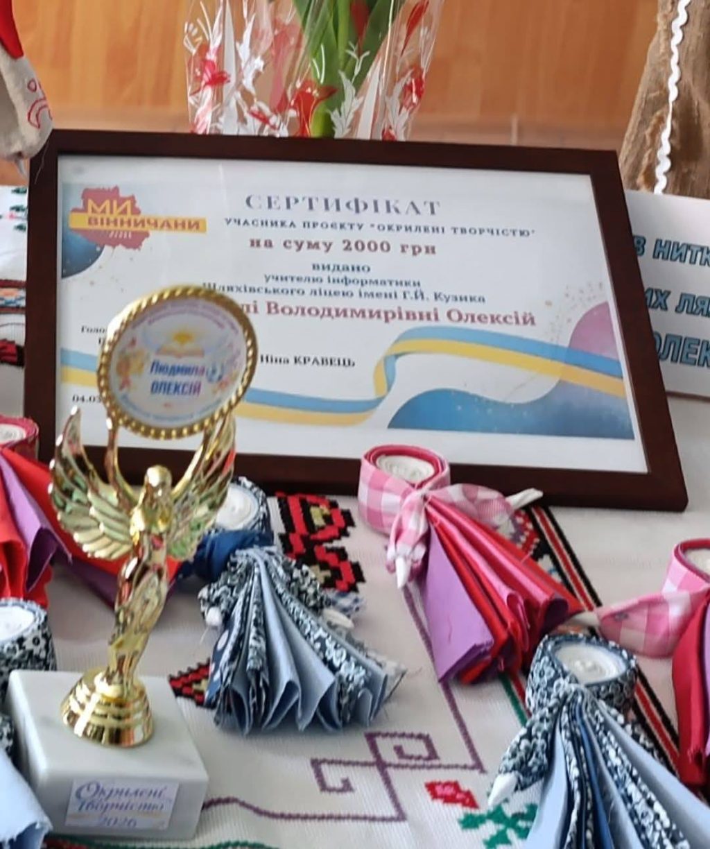 Вона привітала майстриню та вручила грошовий сертифікат на 2000 гривень для підтримки подальшого розвитку її творчих ідей.