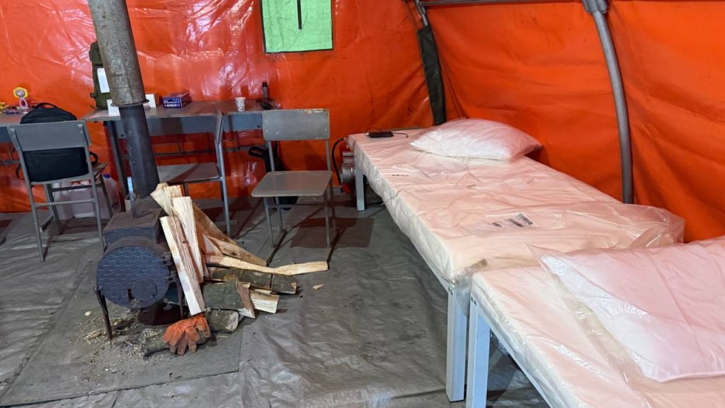 Журналісти Вінниччина Онлайн перевірили пункт за адресою вул. Андрія Первозваного. Усередині намету чергують рятувальники та представники поліції.