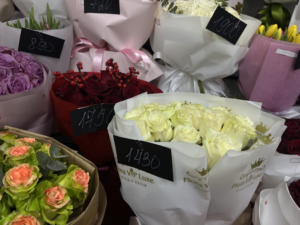 Щодо готових композицій, найдешевші букети із сухоцвітів стартують від 300 гривень. Класичний оформлений букет коштує від 600 гривень. Букет із червоних троянд обійдеться приблизно у 1500 гривень, із тюльпанів — від 550 гривень. Мікс із різних квітів — від 900 гривень і вище, залежно від наповнення.