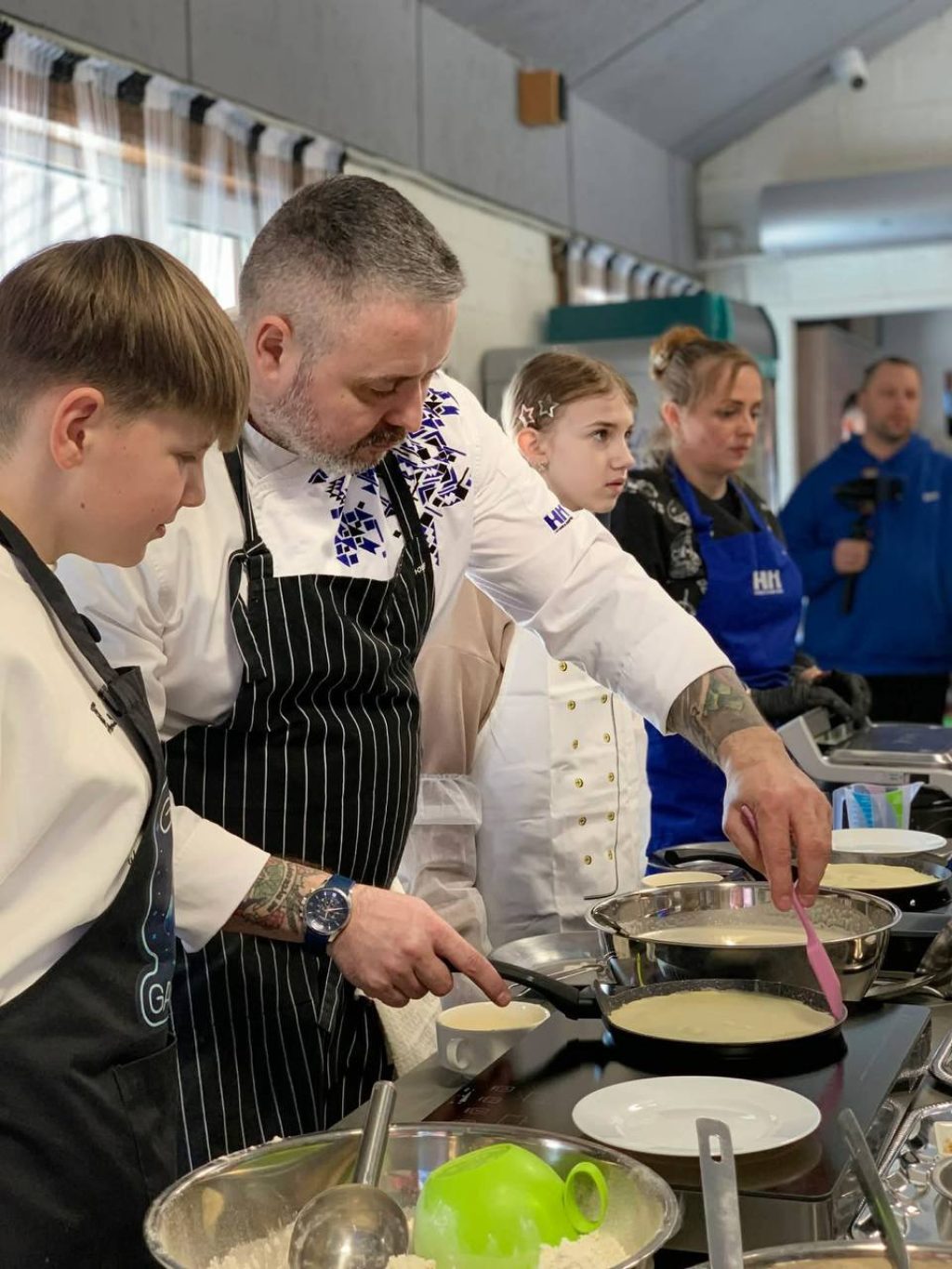 Разом із шеф-кухарем Юрієм Грицаєм учасники готували домашні млинці: замішували тісто, вчилися працювати з пательнею та прикрашали страви варенням і топінгами. Для багатьох це був перший кулінарний досвід.