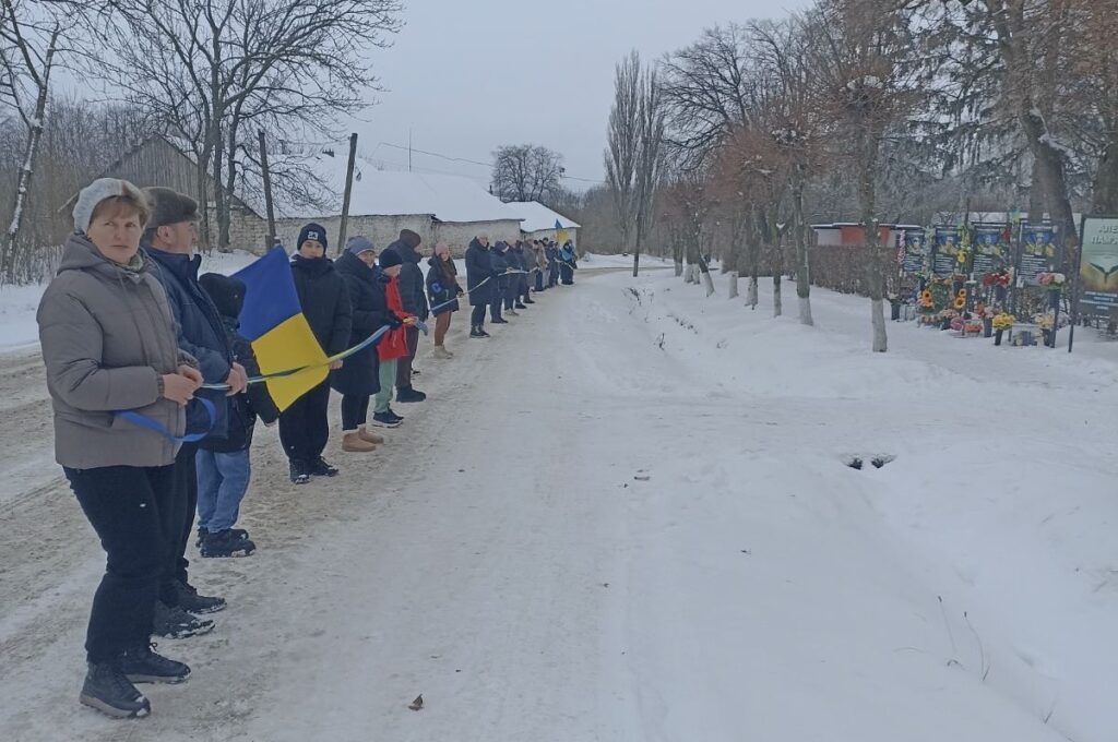 Сьогодні, 22 січня, у Сніткові Мурованокуриловецької громади до Дня Соборності України жителі утворили «живий ланцюг єднання».