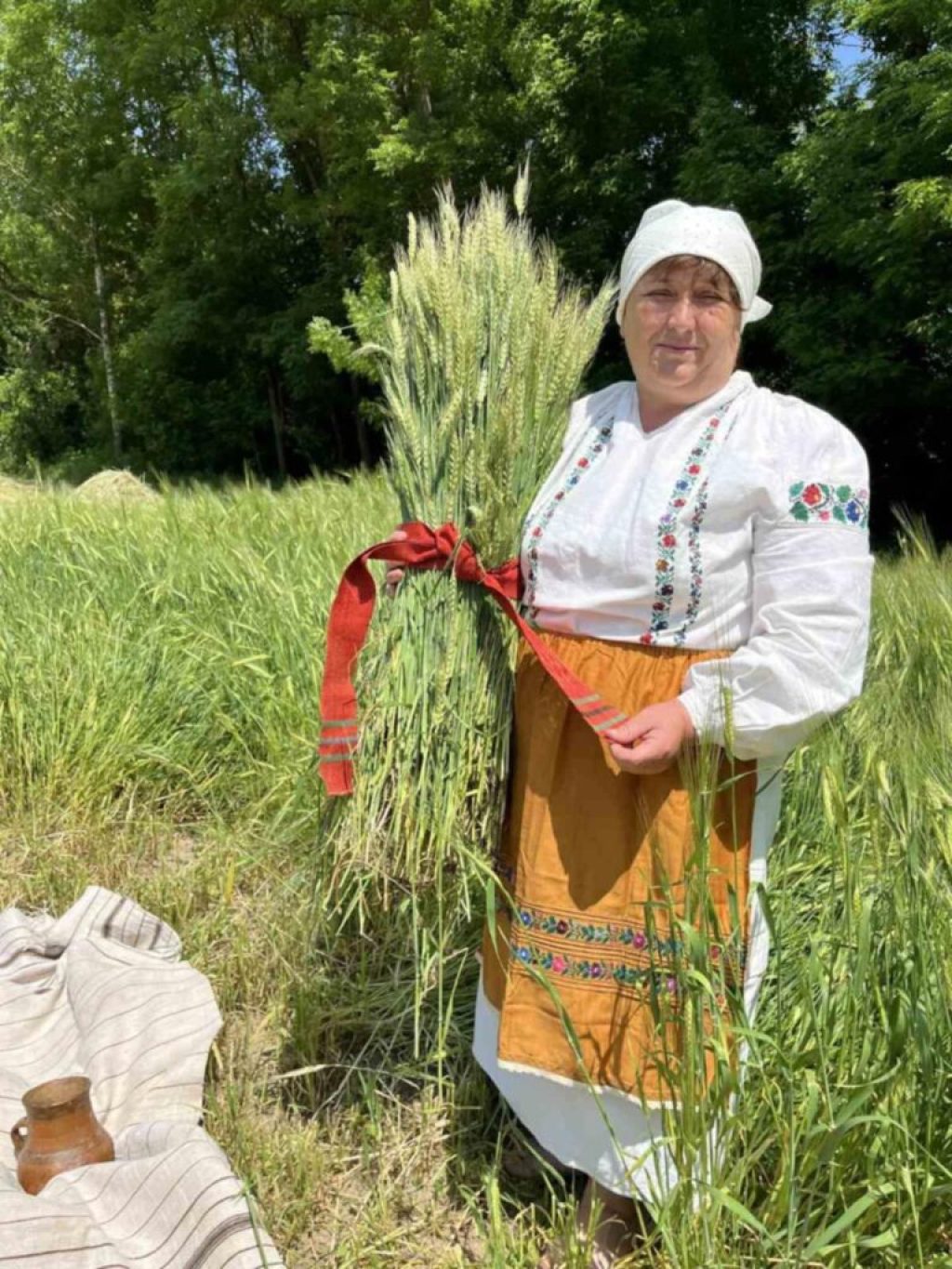 Цьогорічне символічне жниво відбулося на особливому полі — на власній ниві Тетяни. Саме там, під теплим літнім сонцем, місцеві господині у вишиванках зрізали зелене колосся, ретельно формували снопики та перев’язували їх духмяними перевеслами. Усе — як робили наші предки. Із любовʼю вирощене — з любовʼю й зібране. Саме з таких заготовок народжується справжній Дідух — оберіг, що несе в собі пам’ять про землю, працю і рід.