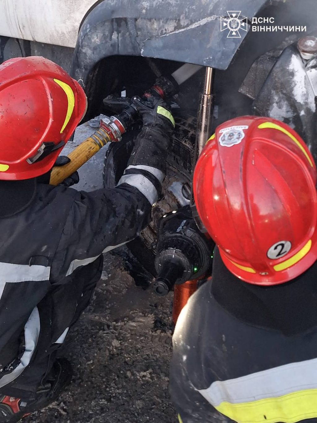 Крім того, у Вінниці на вулиці Київській рятувальники загасили пожежу вантажного автомобіля. Загоряння виникло в моторному відсіку через несправність електричної системи.