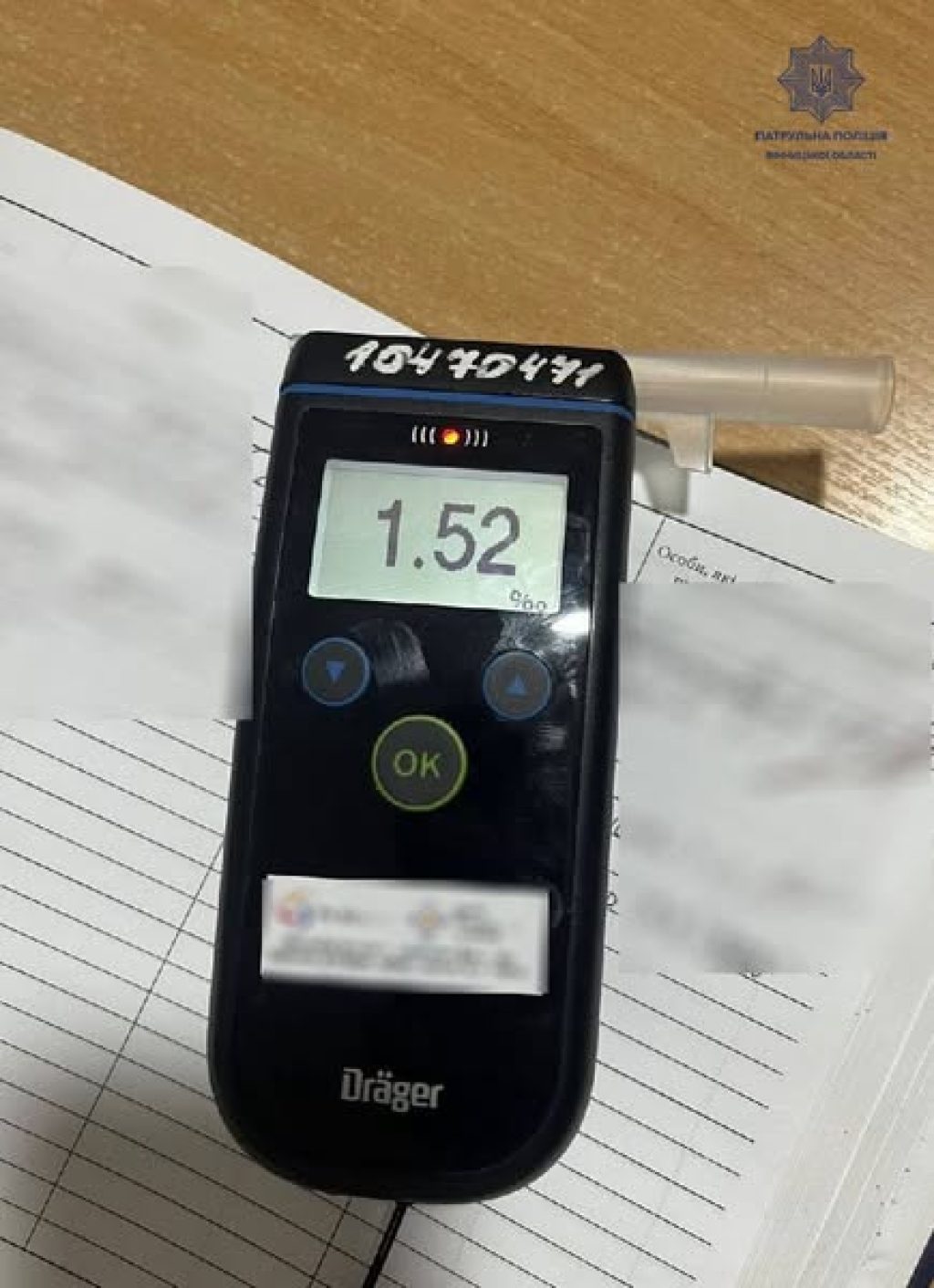 Під час спілкування з винуватцем аварії поліцейські помітили ознаки алкогольного сп’яніння. Чоловік погодився пройти огляд у медичному закладі, який підтвердив наявність 1,52 проміле алкоголю в організмі.
