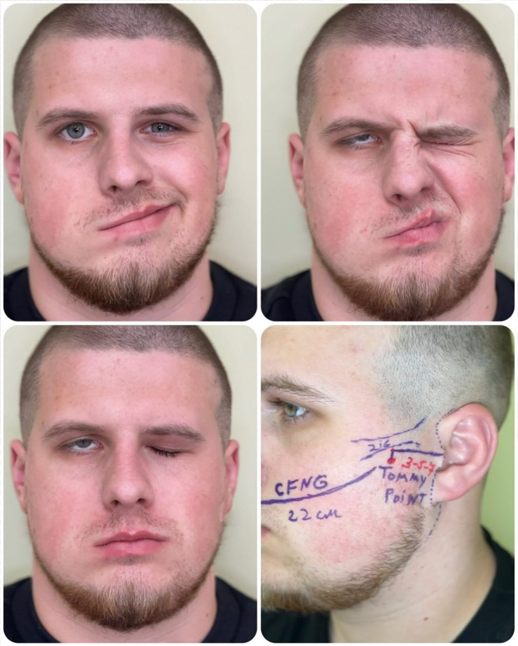 Параліч половини обличчя виник унаслідок травми лицевого нерва. Для відновлення функцій лікарі застосували сучасну багатоступеневу методику лікування.