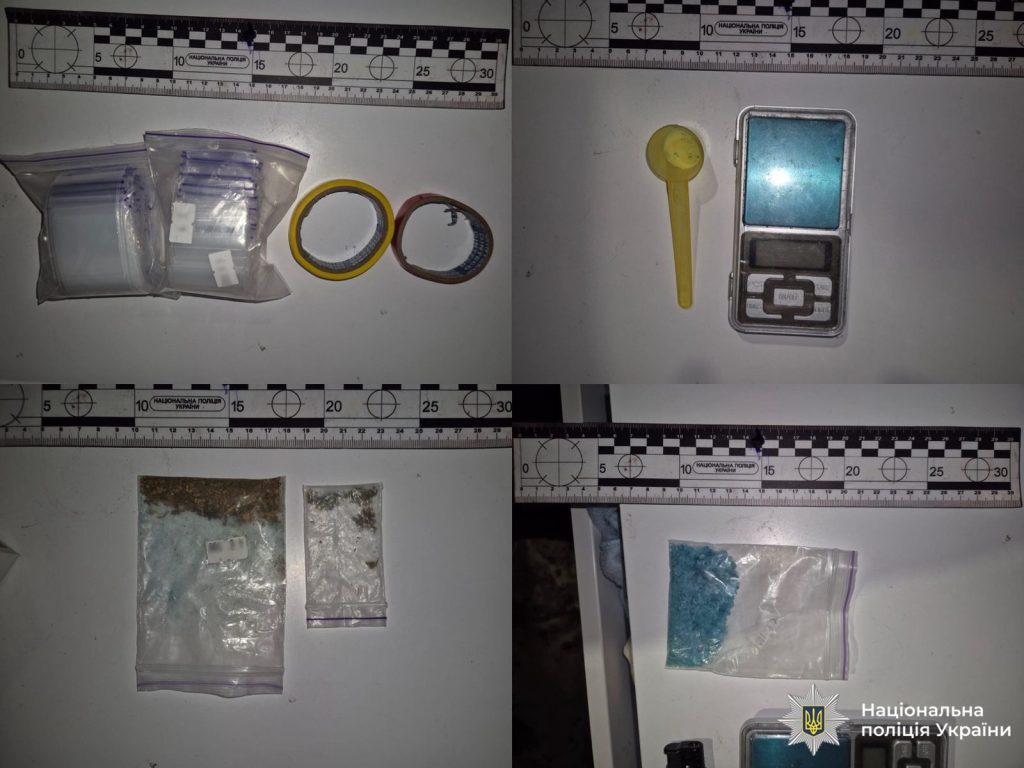 Під час обшуку в помешканні підозрюваного виявили кристалічну речовину, пакети з наркотиками рослинного походження, електронні ваги та пакувальні матеріали.
