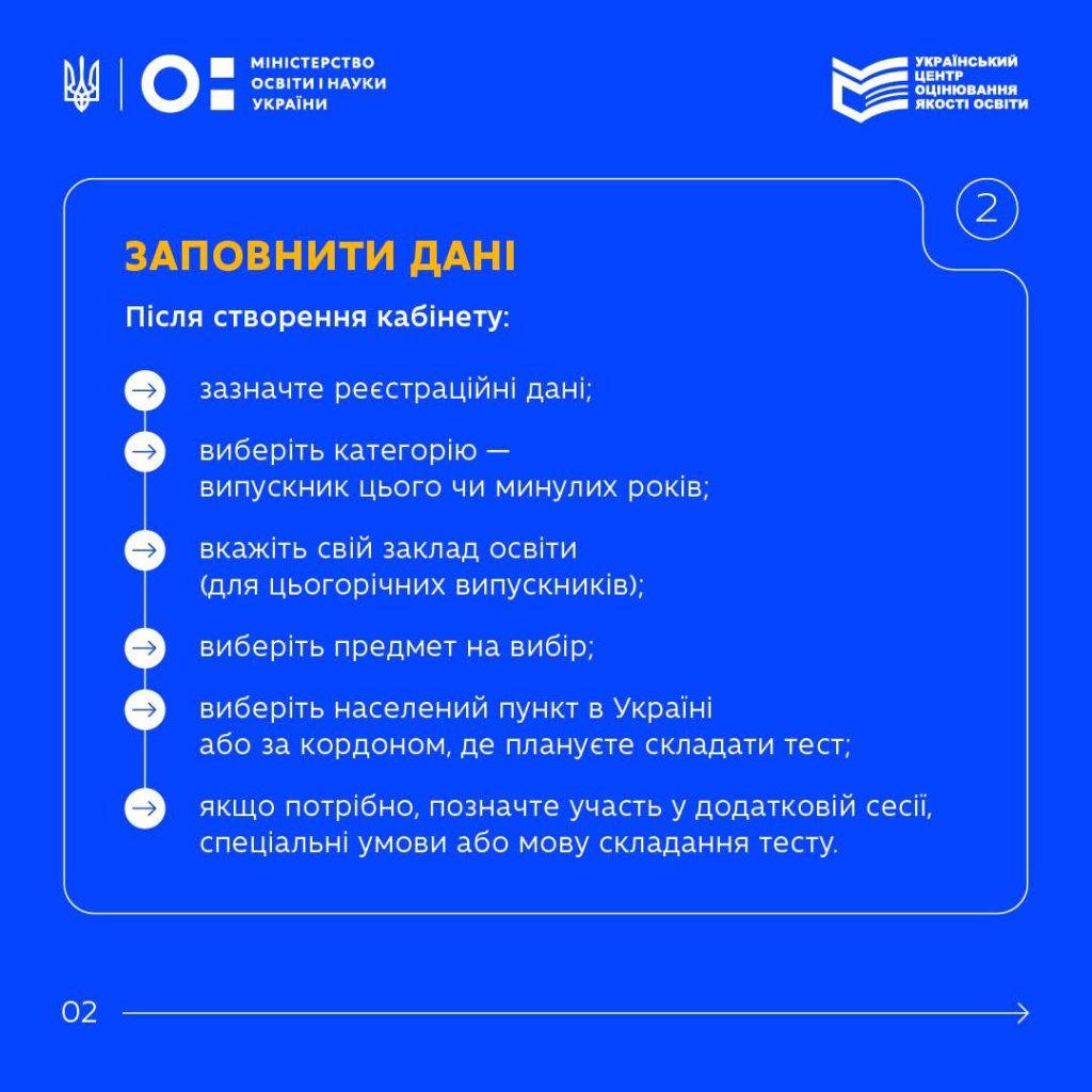 Зареєструватися для участі в основній сесії НМТ можна до 2 квітня включно. Після створення персонального кабінету абітурієнти матимуть можливість перевірити внесені дані та за необхідності внести зміни.