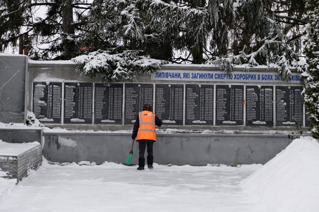 Працівники КП «Комсервіс» не лише залучають техніку, а й відкидають сніг вручну, працюючи за себе і за колег, які нині захищають Україну. Зазначається, що 12 працівників КП «Комсервіс» проходять службу у лавах ЗСУ.